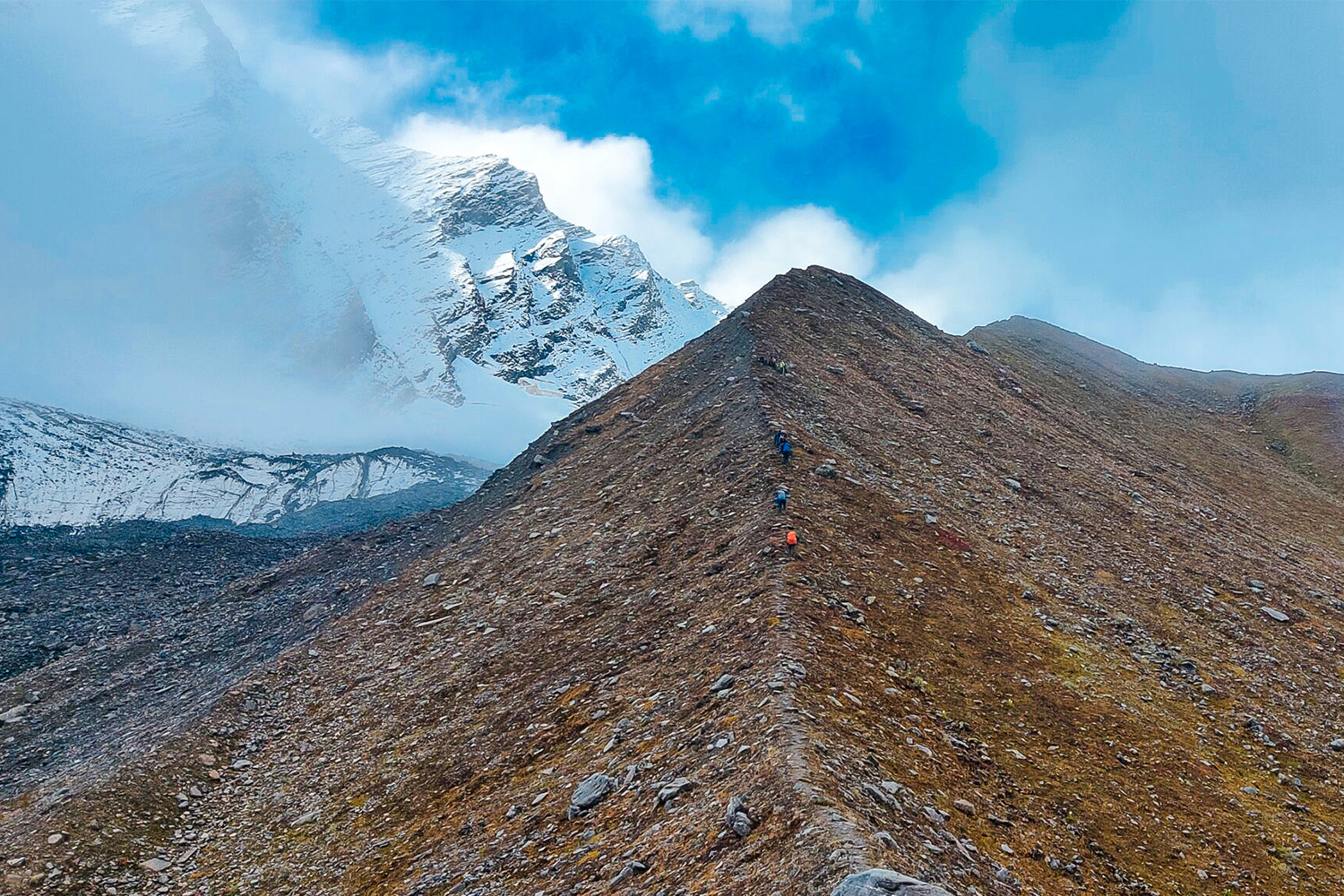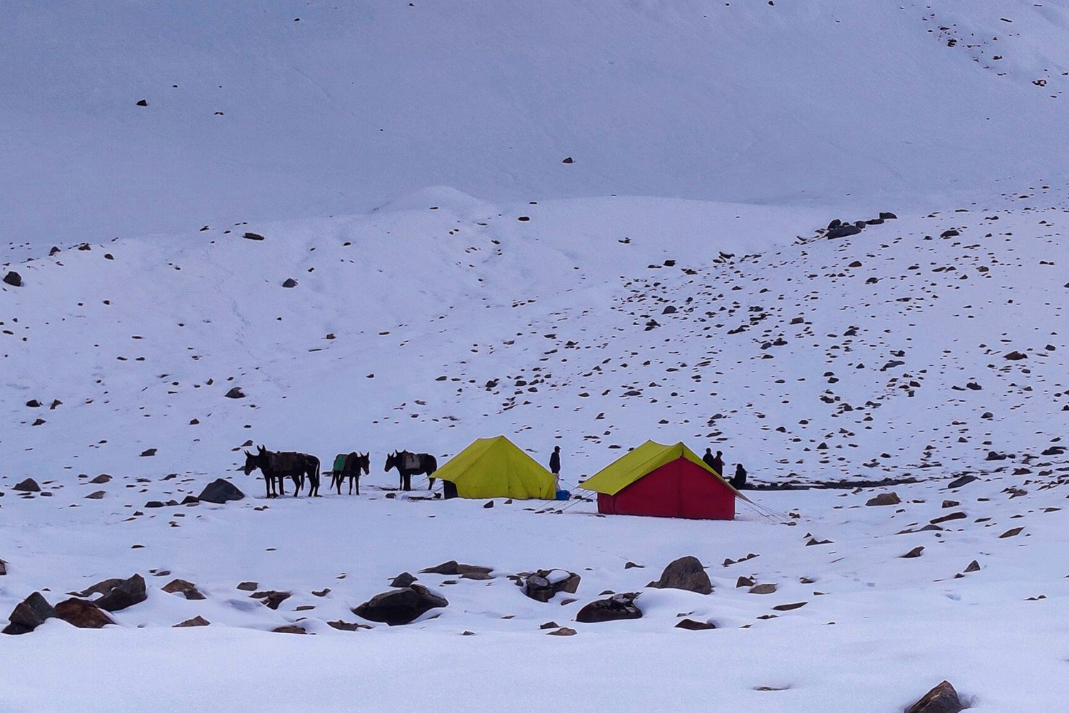 Finally, we camp at the base of Bali Pass on a glacial moraine. This is a fantastic location for a camp, with a beautiful valley below us and the Pass behind us. The temperature drops significantly at night, with sub-zero temperatures being common. Camping at such a high altitude is a unique experience that only a few treks offer.