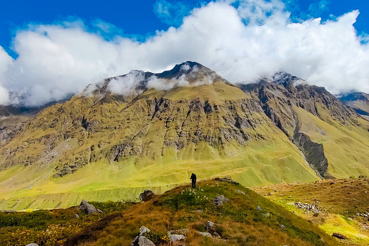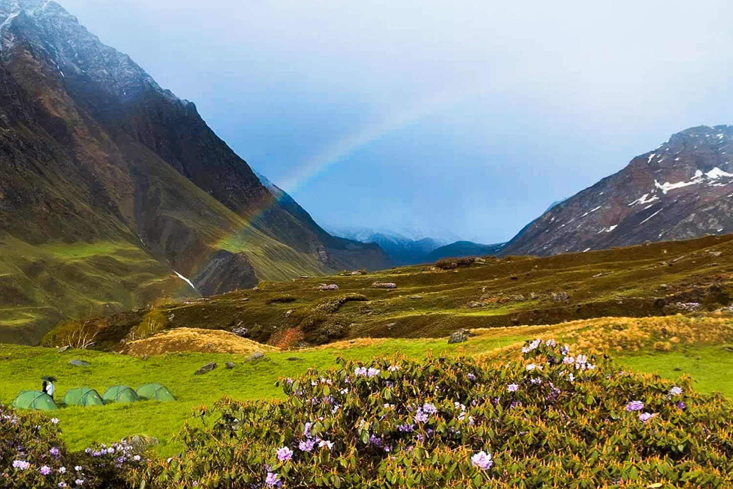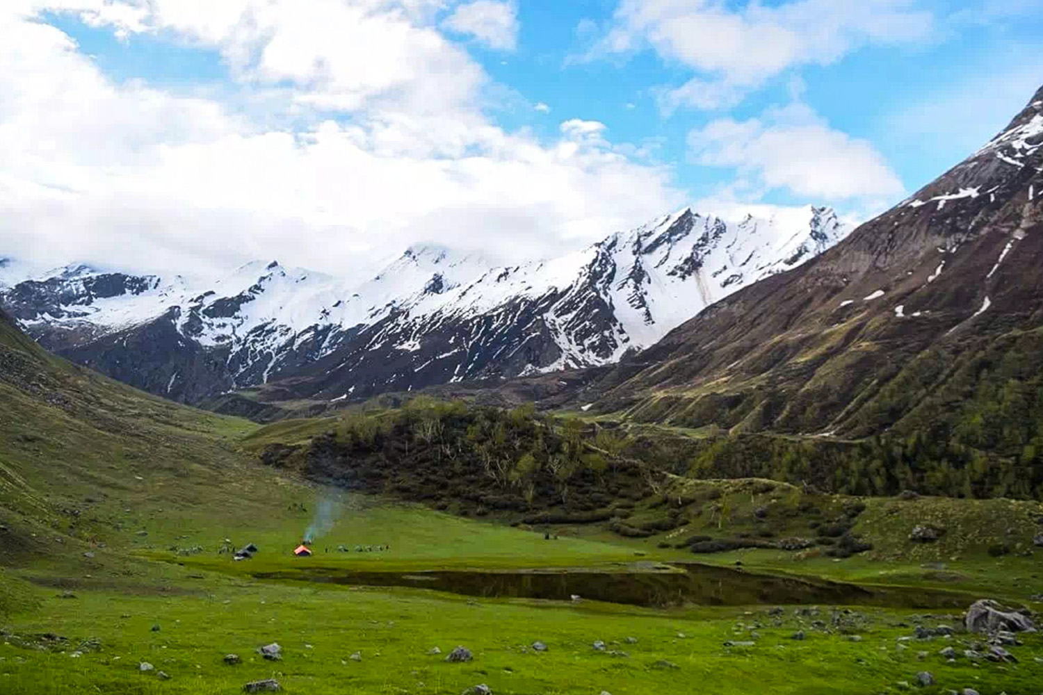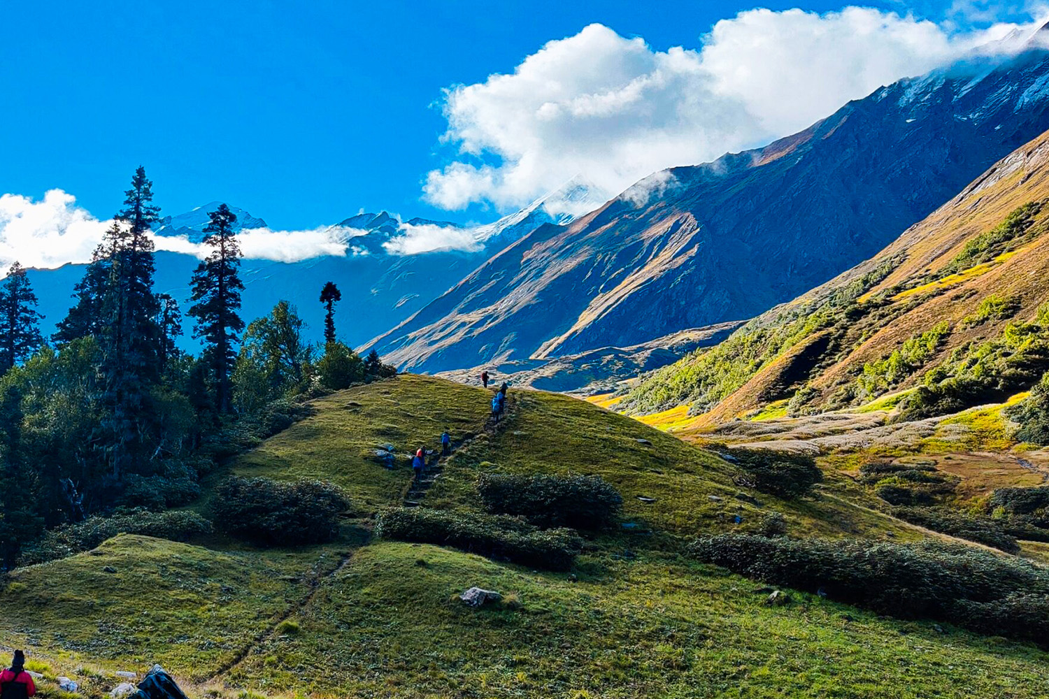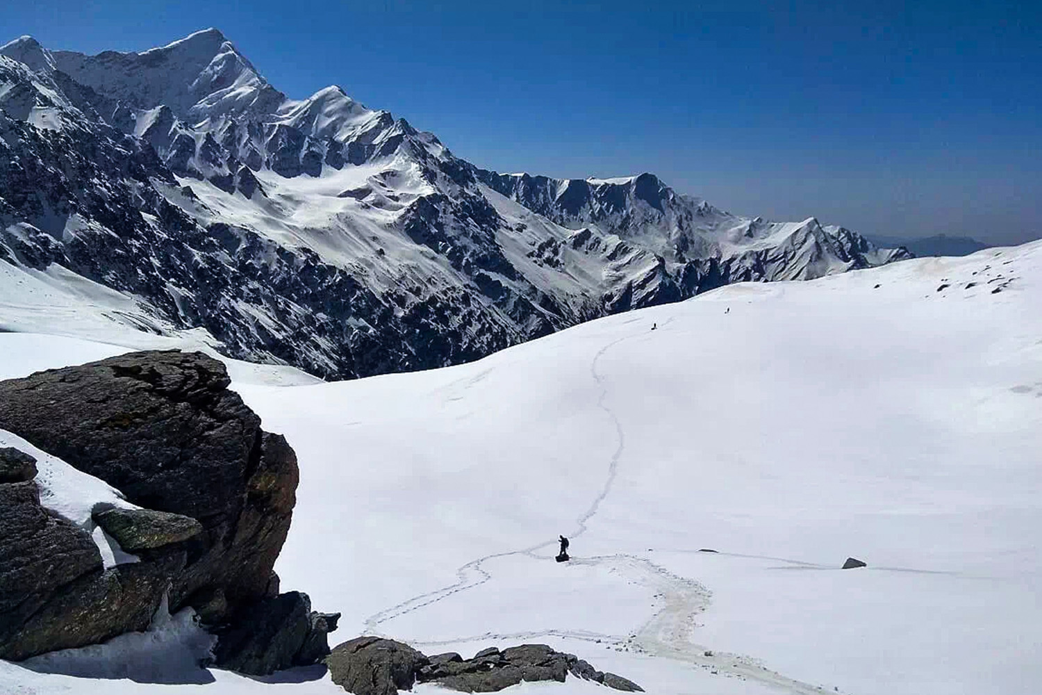 On this day, we have a long journey ahead and therefore, start early in the morning to reach our destination, Bali Pass Basecamp, before afternoon. We begin by descending to the river bed, crossing it, and climbing up the opposite bank to reach the Thanga meadow. This area offers breathtaking views of the Swargarohini ranges and the Kyarkoti valley on the left.